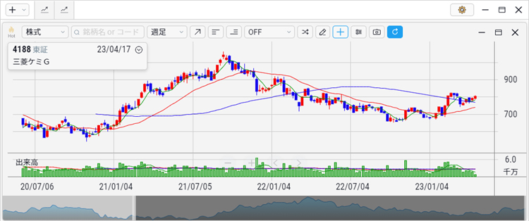 三菱UFJ eスマート証券のチャートツールEVERチャートで作成