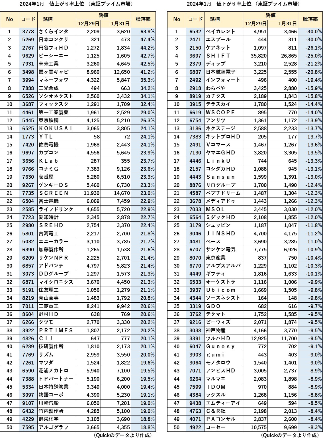 2024年1月の「HOTな銘柄、COOLな銘柄」をお送りいたします。