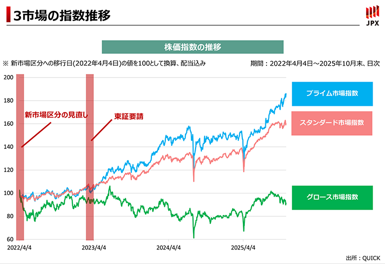 その後2023年の3月に、いわゆる東証要請とされる「資本コストや株価を意識した経営の推進」をプライム市場とスタンダード市場の全上場会社にお願いしました。さらに、今年(2025年)からは、グロース市場の改革を行っています。