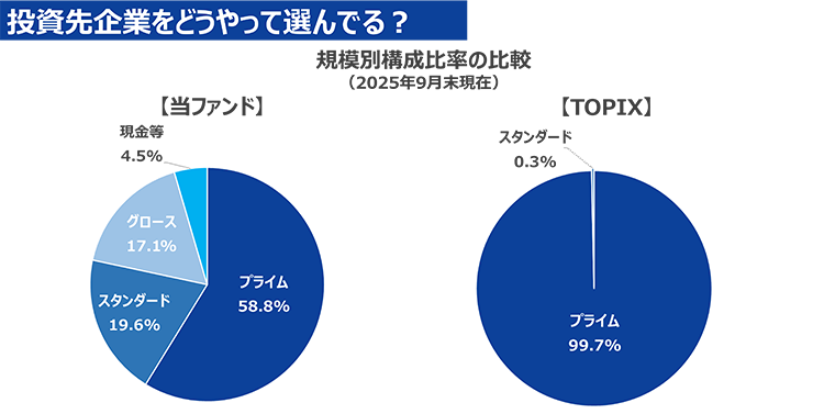 私たちは、個別銘柄をしっかり見る運用を行っていますので、指数自体はあまり重視していません。私たちが運用しているファンドはプライム市場のウェイトが約6割で、スタンダード市場やグロース市場の銘柄にも投資しています。