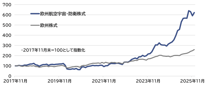 (ご参考)欧州航空宇宙・防衛株式と欧州株式のパフォーマンス