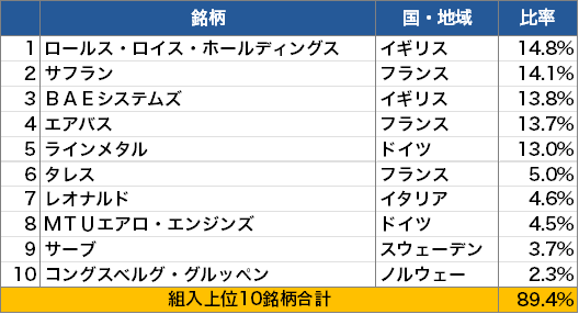 ・上記は、欧州航空宇宙・防衛株式のデータが取得可能な時点から計測しています。