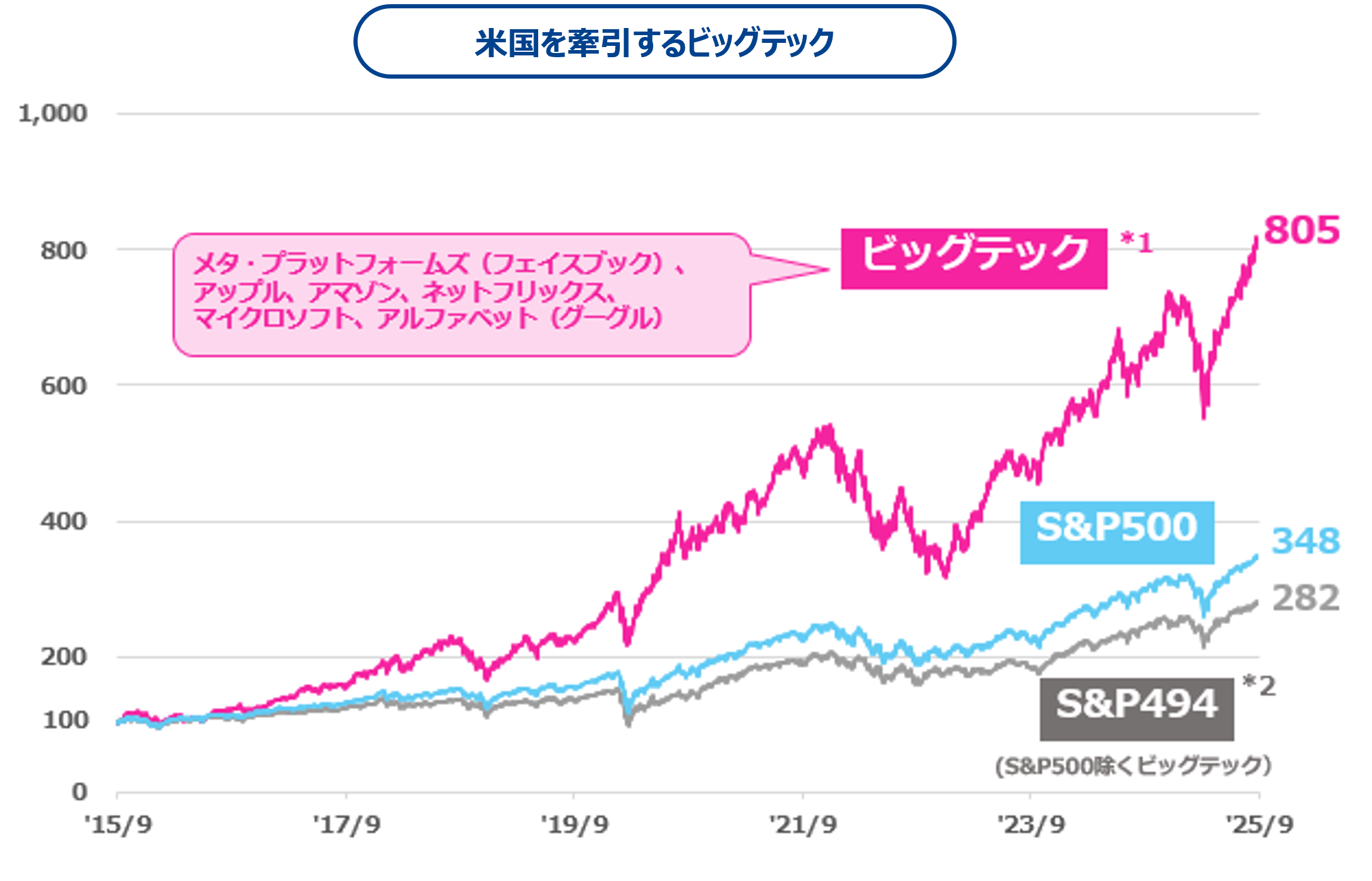 *1 ビッグテックはメタ・プラットフォームズ(フェイスブック)、アップル、アマゾン、ネットフリックス、マイクロソフト、アルファベット(グーグル)を時価総額加重平均で指数化