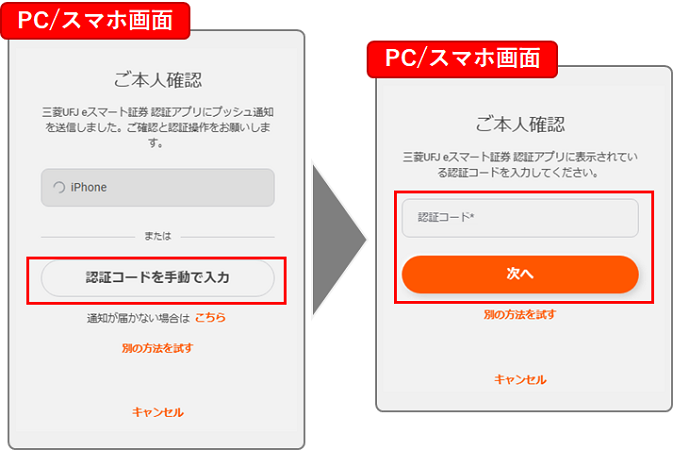 三菱UFJ eスマート証券 認証アプリ 認証・登録方法