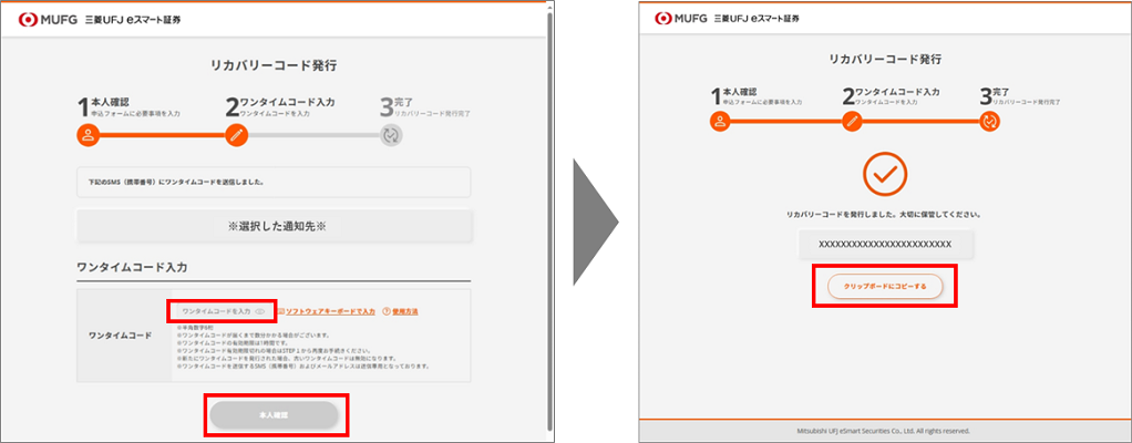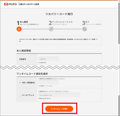 「ワンタイム認証コードを送信しましたという画面が表示されると同時に、登録済みの認証メールアドレスにワンタイム認証コード(数字6桁)を通知いたします。