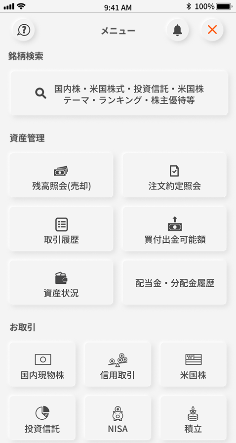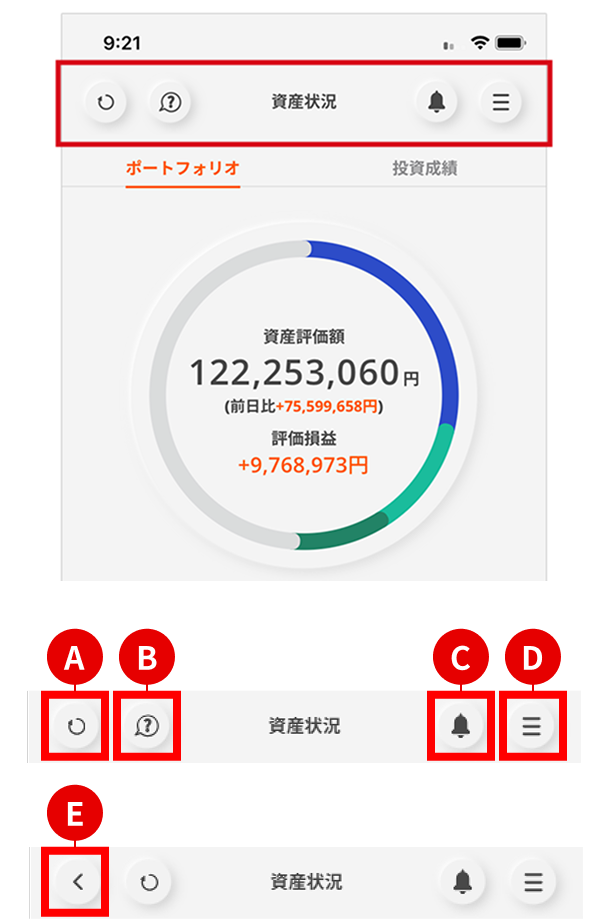 本アプリでは、ログイン後、すぐに資産状況を把握できるようにポートフォリオ画面が表示されます。