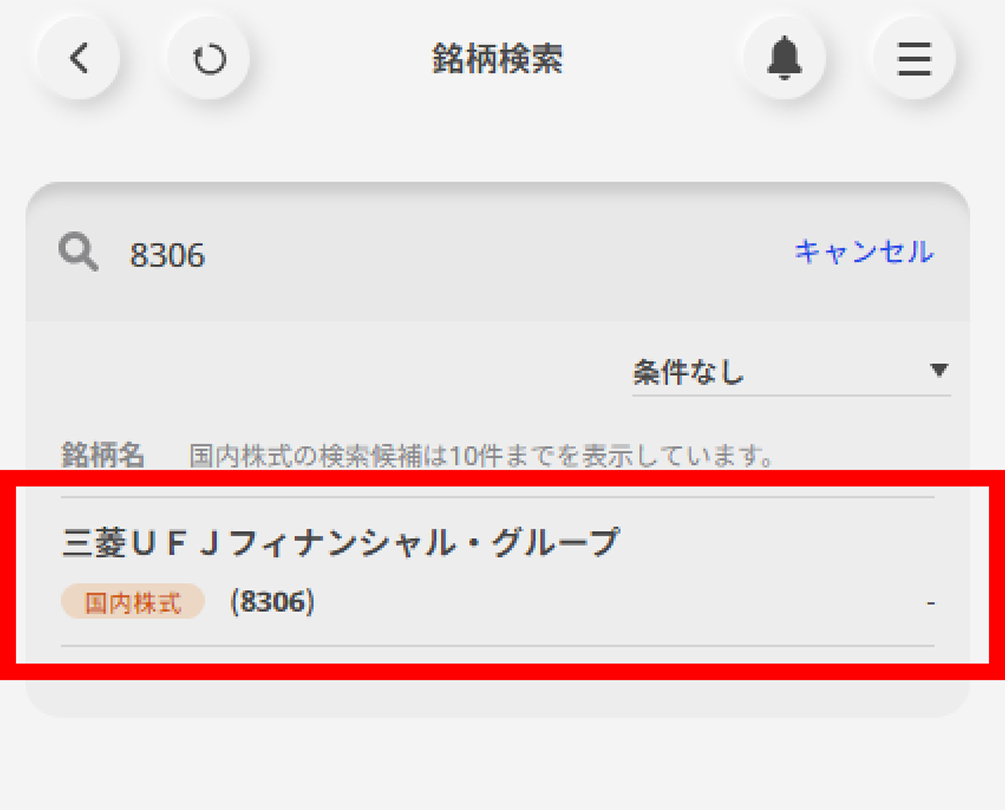 検索結果から取引したい銘柄を選択する。