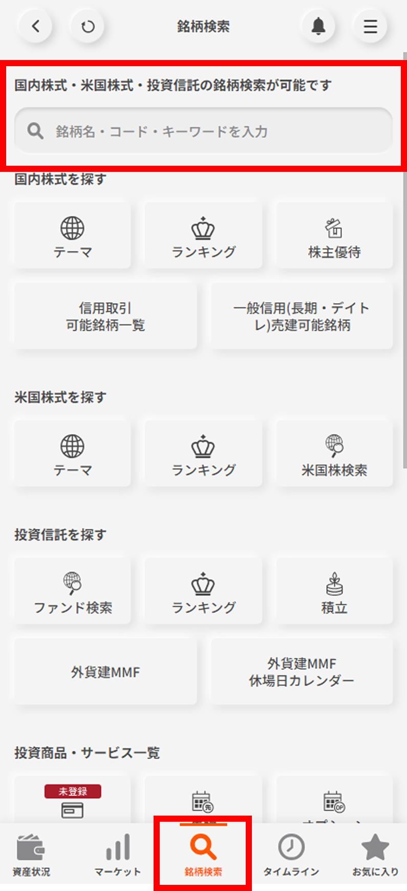画面下部の銘柄検索を選択し、