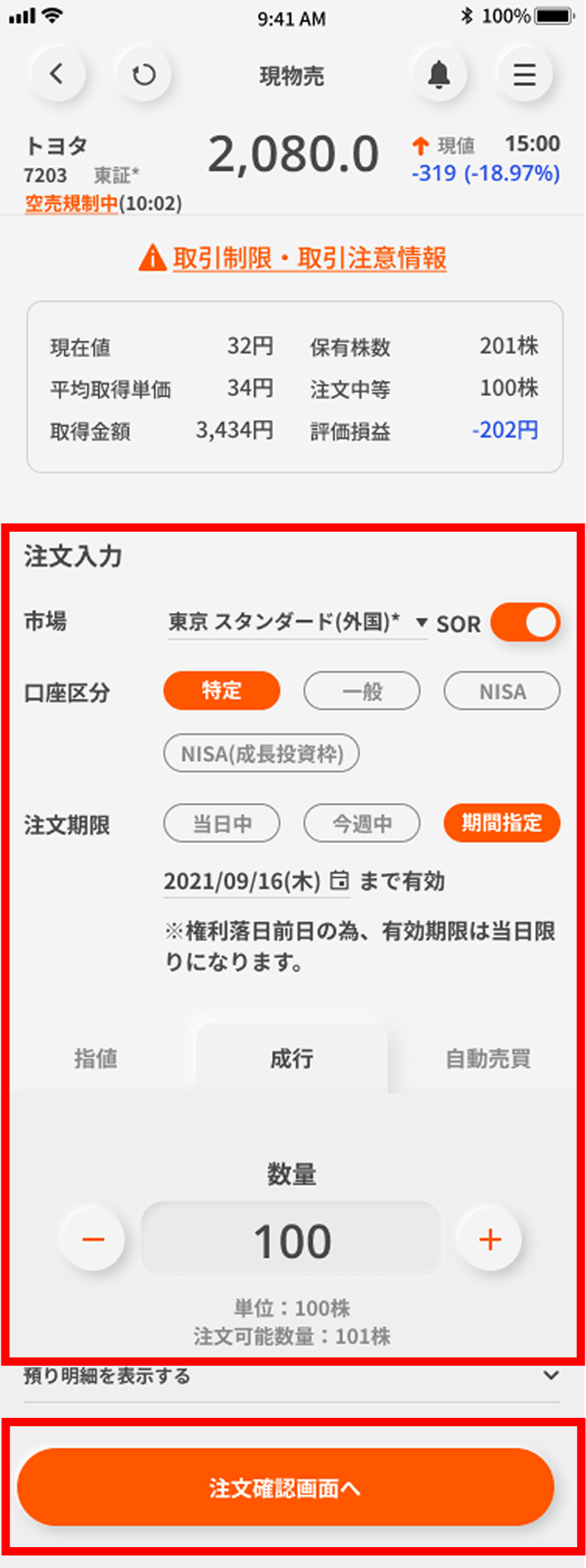 注文内容を入力のうえ、