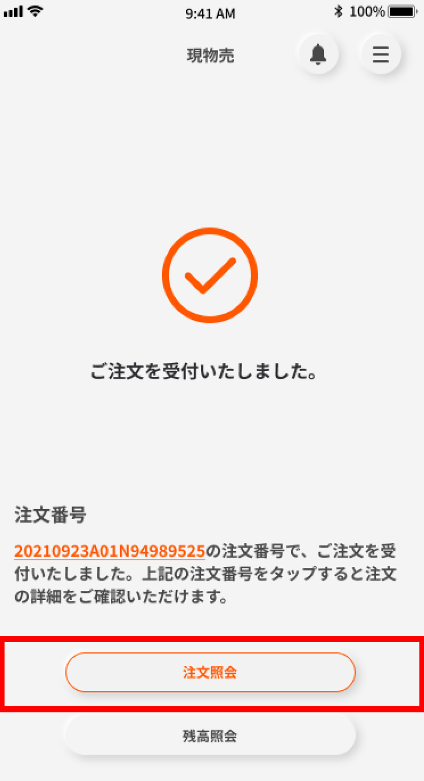 発注内容は「注文照会」ボタンからご確認いただけます。