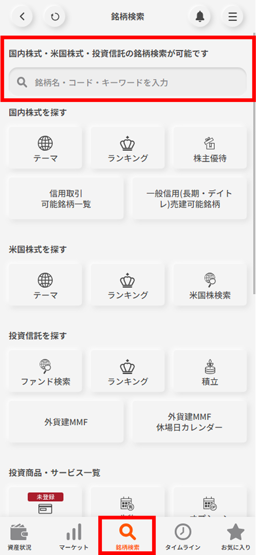 画面下部の銘柄検索を選択し、