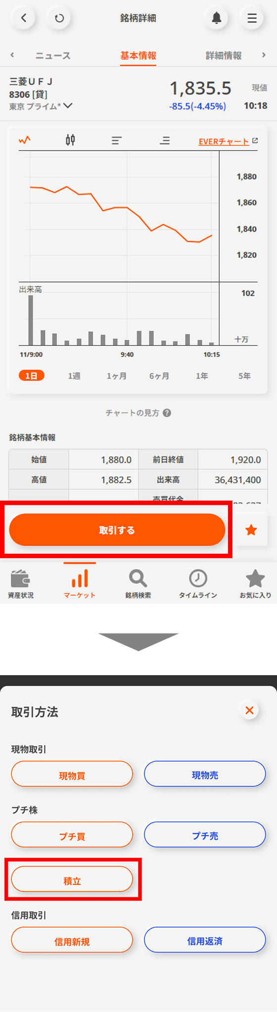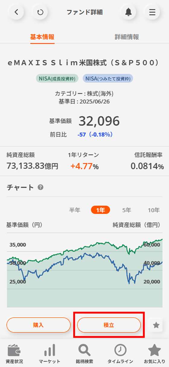「積立」ボタンをタップする。