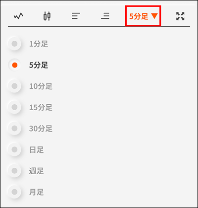 時間足を選択後、再度画面上部のアイコンをタップすることでチャートに反映されます。